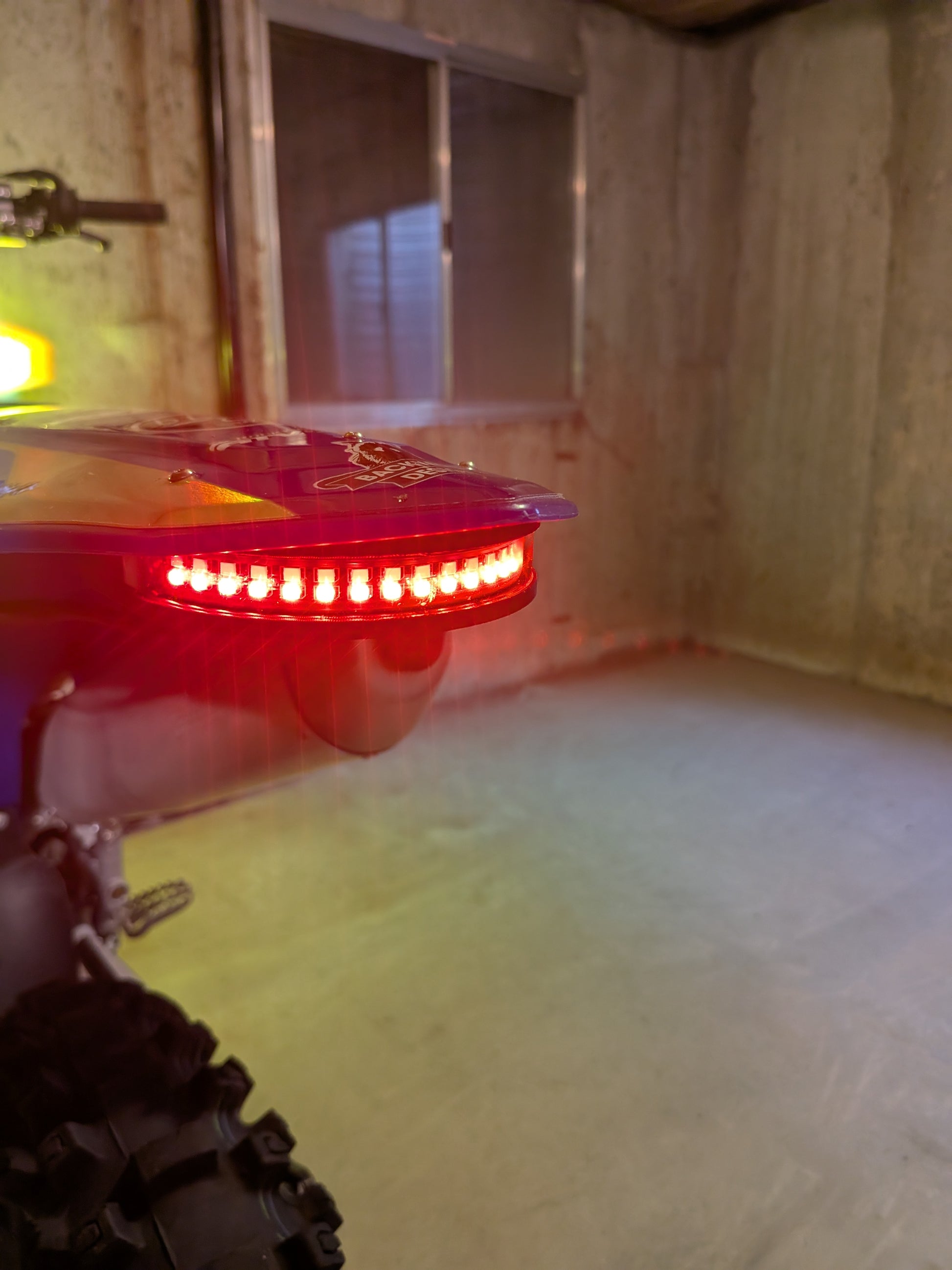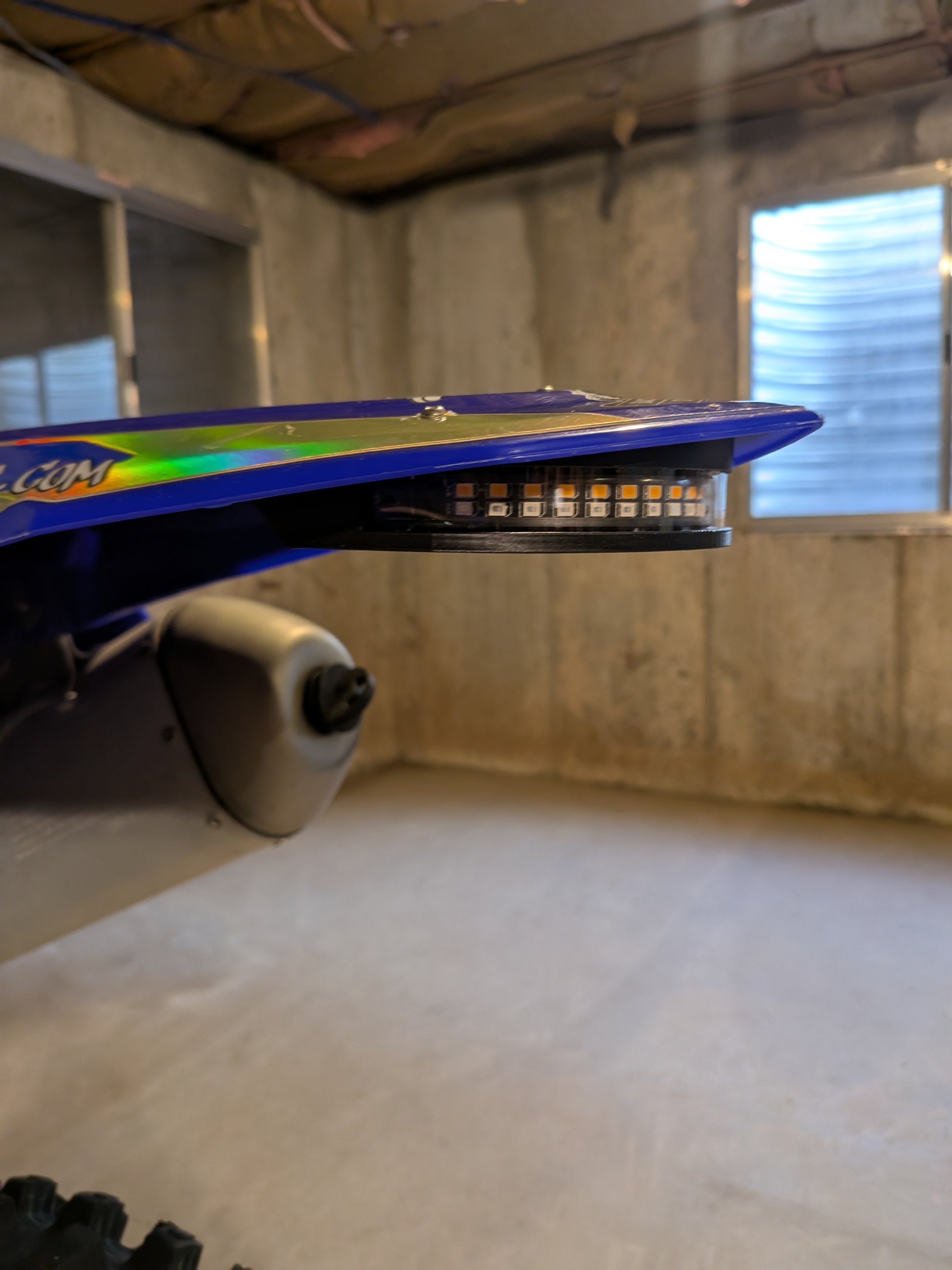 - 3D printed tail light mount with brass nut-serts for mounting.